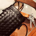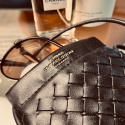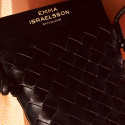 A small and sleek ”on the go-bag” that’s perfect for carrying your everyday essentials, such as your phone, keys, and glasses, without ever feeling heavy or bulky. The black bag features a woven pattern, and at the top, on the smooth section, Emma Israelsson’s logo is stamped in gold. With its clean and elegant design, the bag quickly becomes a go-to favorite that elevates any outfit, just as a perfect everyday bag should.
