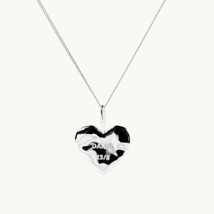 An exclusive and beautiful heart with an organic shape, with your own engraving! Dates and numbers can be engraved as well. All letters are capitalized.